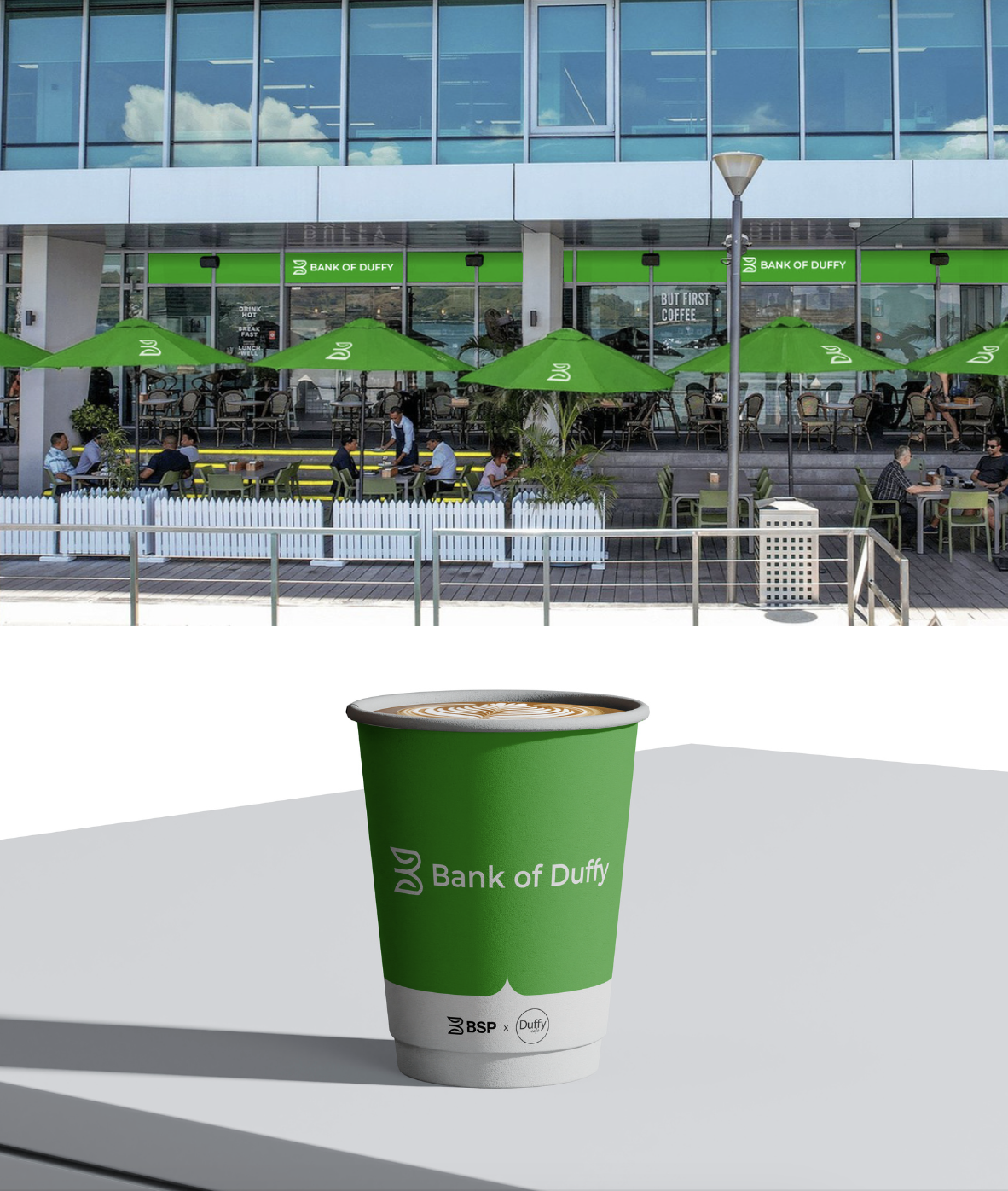 This would be a collaboration with Duffy, transforming the venue overnight into 'Bank of Duffy, fitted out with custom BSP x Duffy coffee cups and signage.