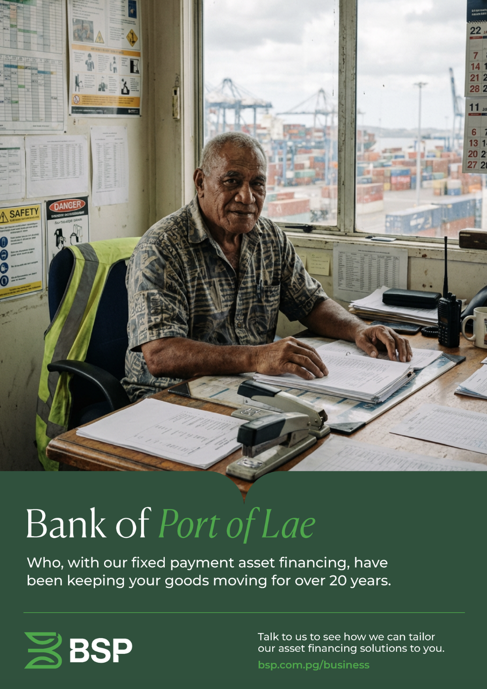 VO: We’re the bank of John, who has been running the Port of Lae for over 20 years.